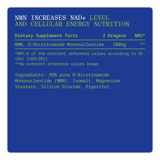 • NMN Supplement Dragees von Dr. Noel für NAD+ Unterstützung und Anti-Aging-Effekte.