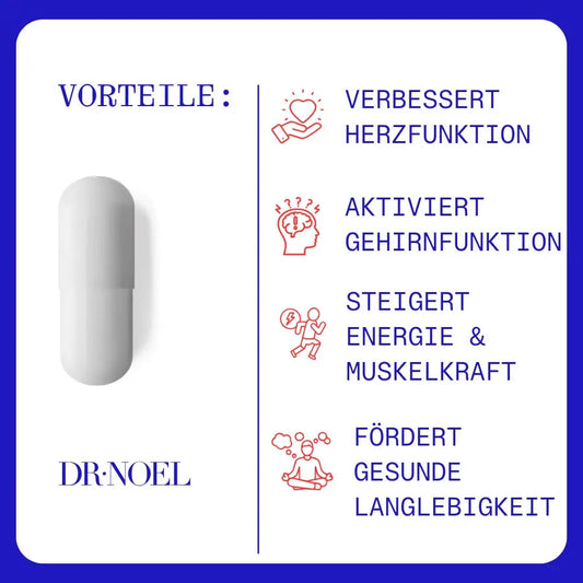 • Bioaktive Taurin Kapseln von drnoel-life.com für Herzgesundheit und Vitalität in einer modernen Verpackung.