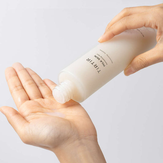 • TIRTIR Milk Skin Toner 150 ml Flasche mit elegantem Design, ideal für die Hautpflege mit koreanischer Kosmetik.