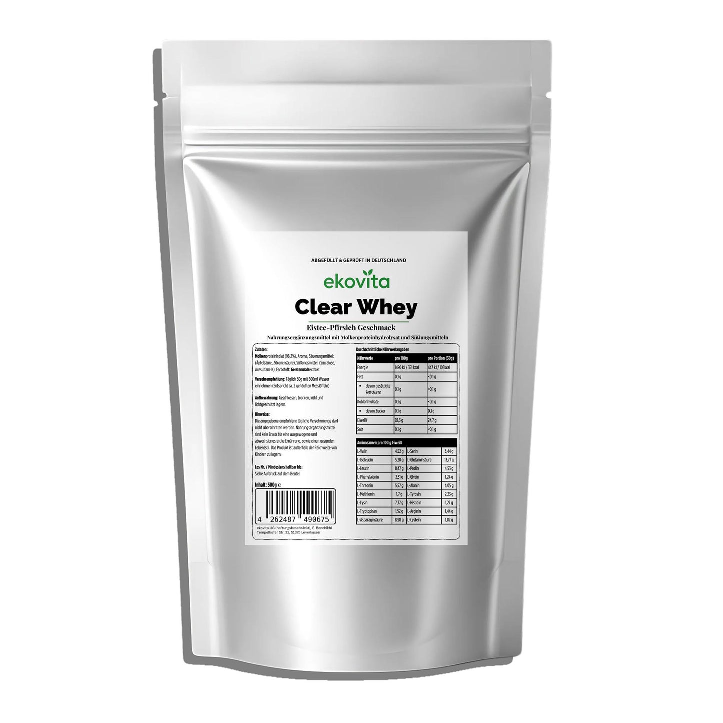 Gönn dir den einzigartigen Geschmack von ekovita Clear Whey Protein Eistee Pfirsich! Dieses premium Proteinpulver bietet dir nicht nur hochwertige Proteine für den Muskelaufbau, sondern verleiht deinem Tag mit seinem frischen, fruchtigen Geschmack auch einen besonderen Genussmoment. Lade deine Energie auf und unterstütze deinen Körper mit einem köstlichen Shake!