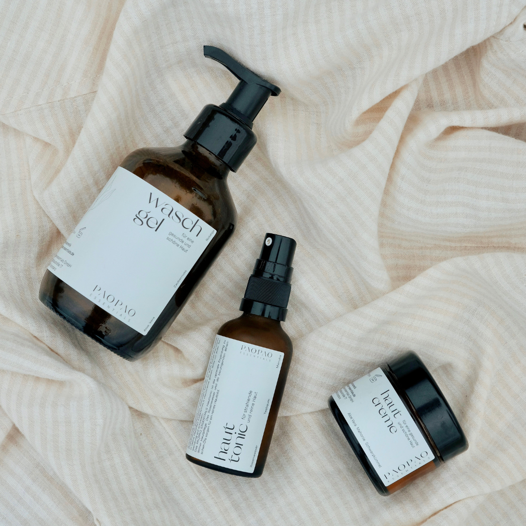 Beginne deine Reinigung mit dem Waschgel, gefolgt vom Hauttonic und beende mit unserer Creme. Diese Routine versorgt deine Haut mit wertvollen Nährstoffen und Feuchtigkeit.