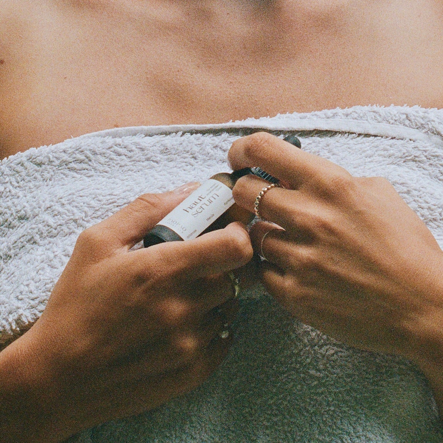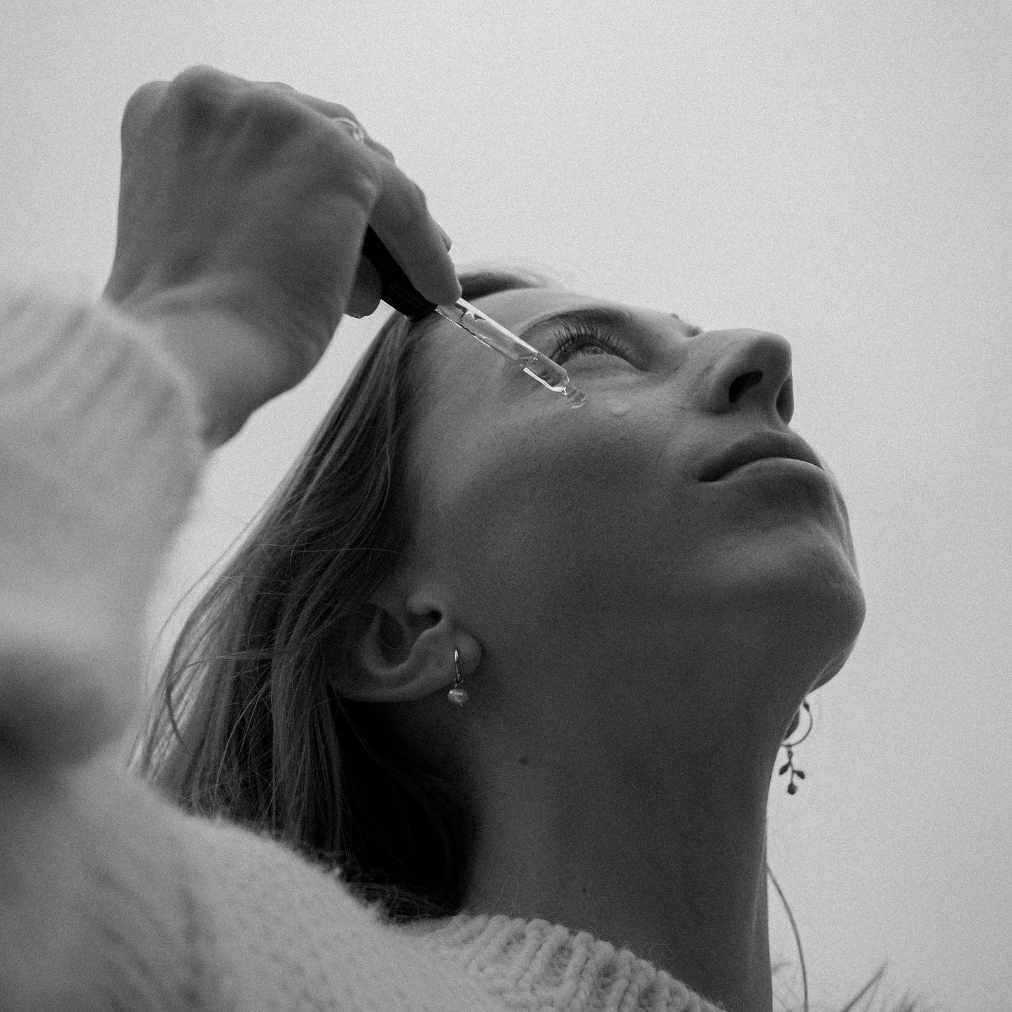 Gib je einen Tropfen Serum auf deine Stirn und beide Wangen. Massiere das Serum sanft mit kreisenden Bewegungen ein und lasse es einige Minuten einwirken, um die besten Ergebnisse zu erzielen.