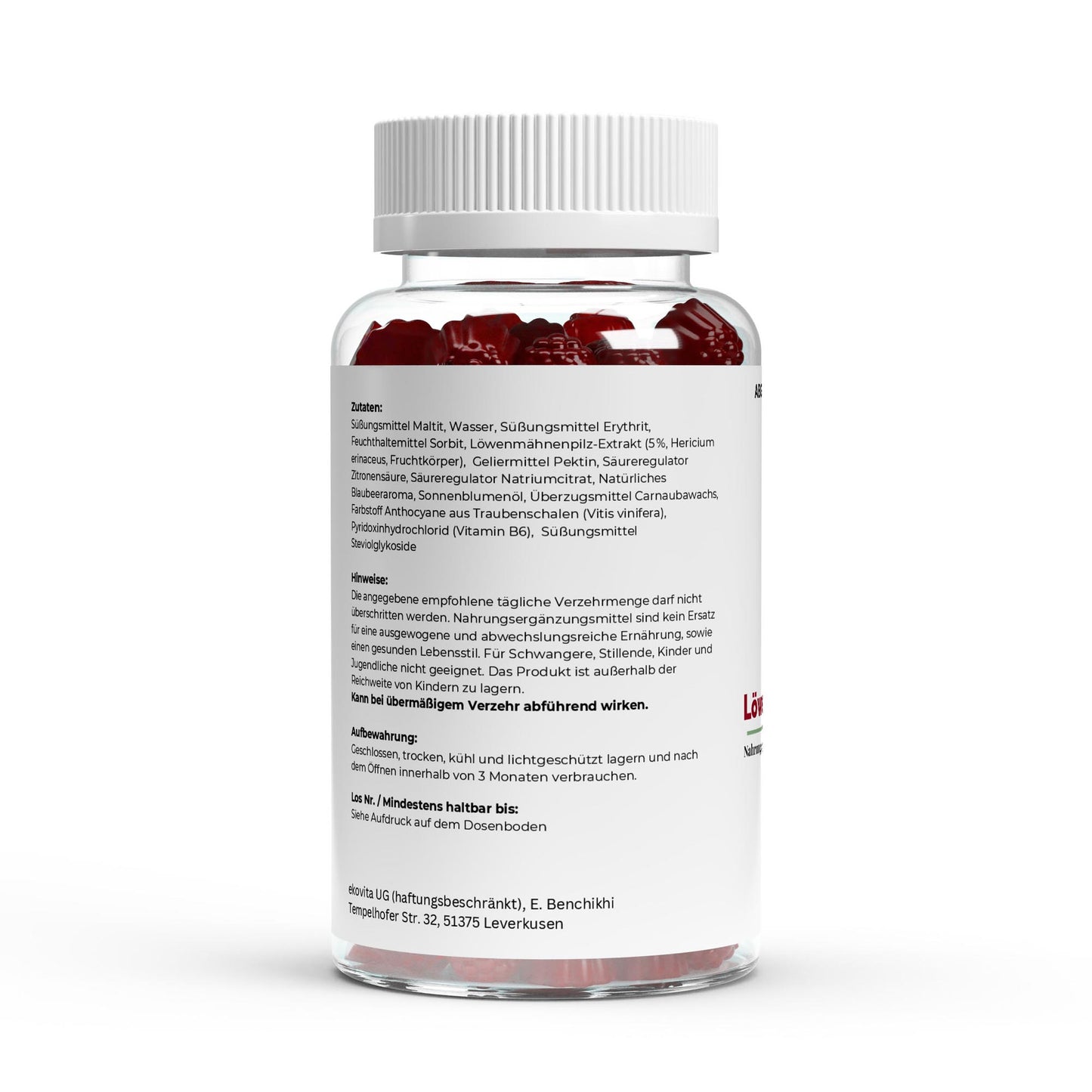 Verzehre täglich 2 Gummies, um die Vorteile von Löwenmähne und Vitamin B6 zu genießen. Die fruchtigen Gummies sind bequem und jederzeit zu konsumieren. Jetzt entdecken und die Vorteile für Konzentration und Gedächtnis erleben!