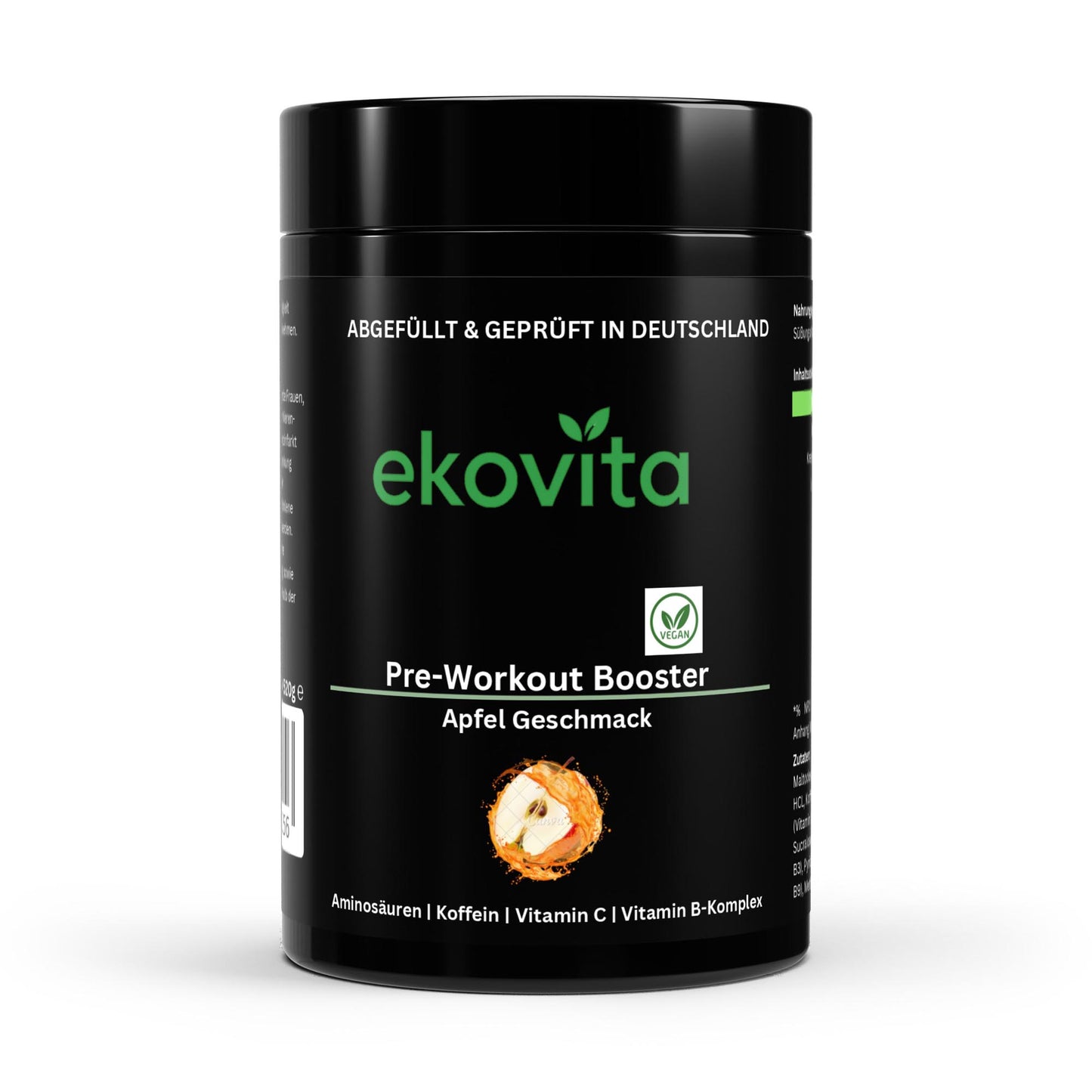 Du bist bereit für dein nächstes intensives Workout? Unser Ekovita Pre-Workout Booster vereint erfrischenden Apfelgeschmack mit leistungssteigernden Inhaltsstoffen, um dir maximale Energie und Fokus zu bieten. Starte jetzt durch!