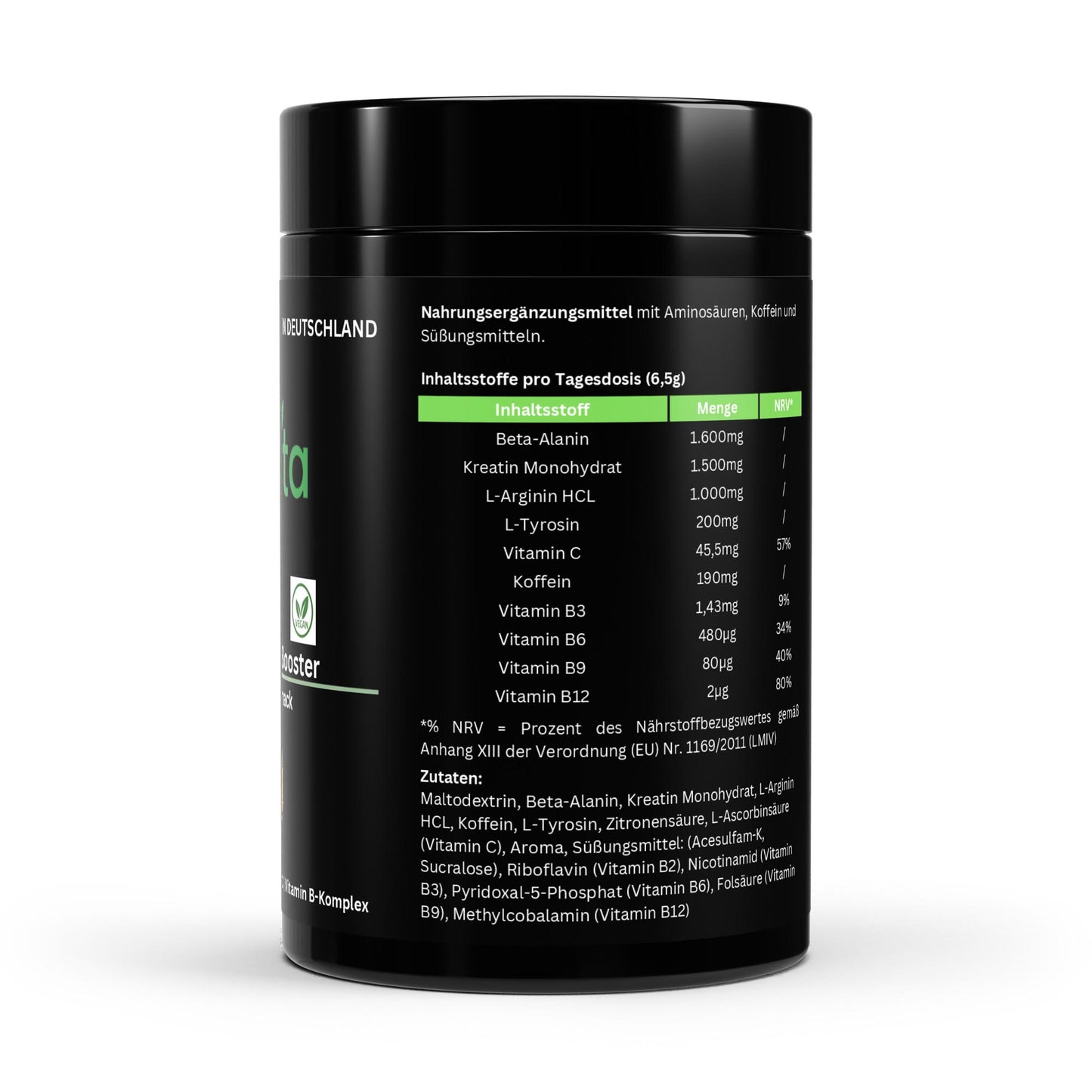 Ja, unser Pre-Workout Booster ist vegan und enthält keine tierischen Inhaltsstoffe.